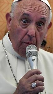 Francis-Bergoglio seems to want to pick a fight with everyone these days. He's got the Newchurch Neocons denouncing him as heretic. He's got the child victims of his paedophile presbyters, Newbishops, and Newcardinals denouncing him as a paedophile facilitator. Now he's got the international corps of journalists against him. It seems that Bergoglio is gouging international journalists with extortion payments to accompany Newpapal junkets.
