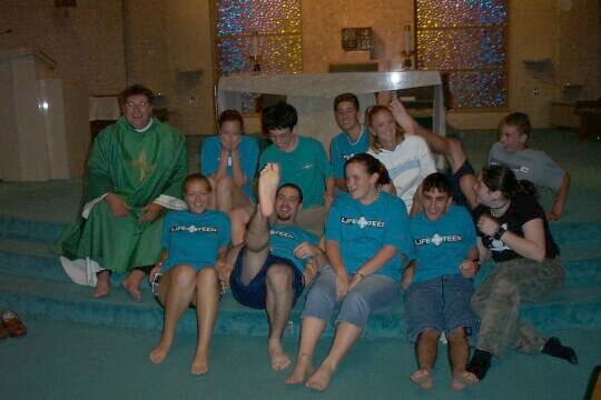 "Barefoot" Mess in which teenagers sit around the Novus Ordo "table" in T-shirts, shorts, and bare feet |